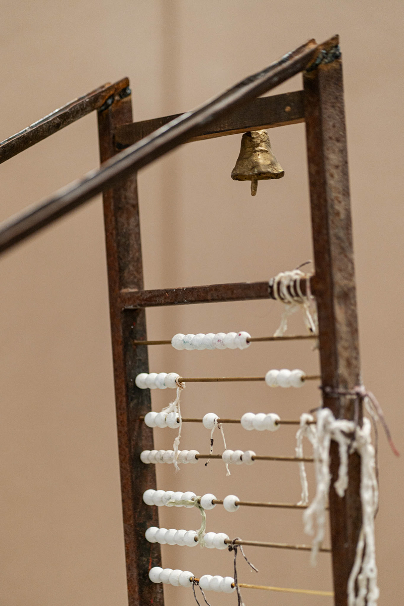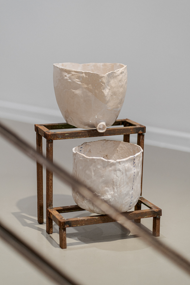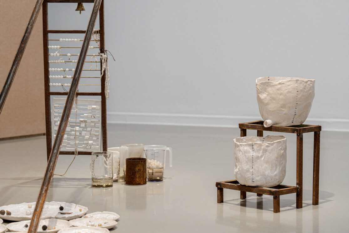 En Generación 2025 presento una serie de piezas que surgen de una investigación en torno a la historia de la medición del tiempo. En el espacio encontraremos unas clepsidras (relojes de agua) y unas rampas similares a las de los experimentos sobre la aceleración de Galileo, que contribuyeron al desarrollo de la idea física moderna de tiempo y en los que también usó agua y bolas de latón. Una serie de artilugios y juegos. La relación entre el agua y la medición del tiempo es muy estrecha: el agua derramada fue usada como medida tanto en los primeros relojes como en la ciencia posterior. Esa agua, ahora quieta, es la medida del tiempo que sucedió. Otros elementos que han estado presentes han sido la campana, el péndulo, el calendario o la columna trajana, con la intención de desarrollar una poética en torno a la medición del tiempo, generando relojes imprecisos y calendarios propios.