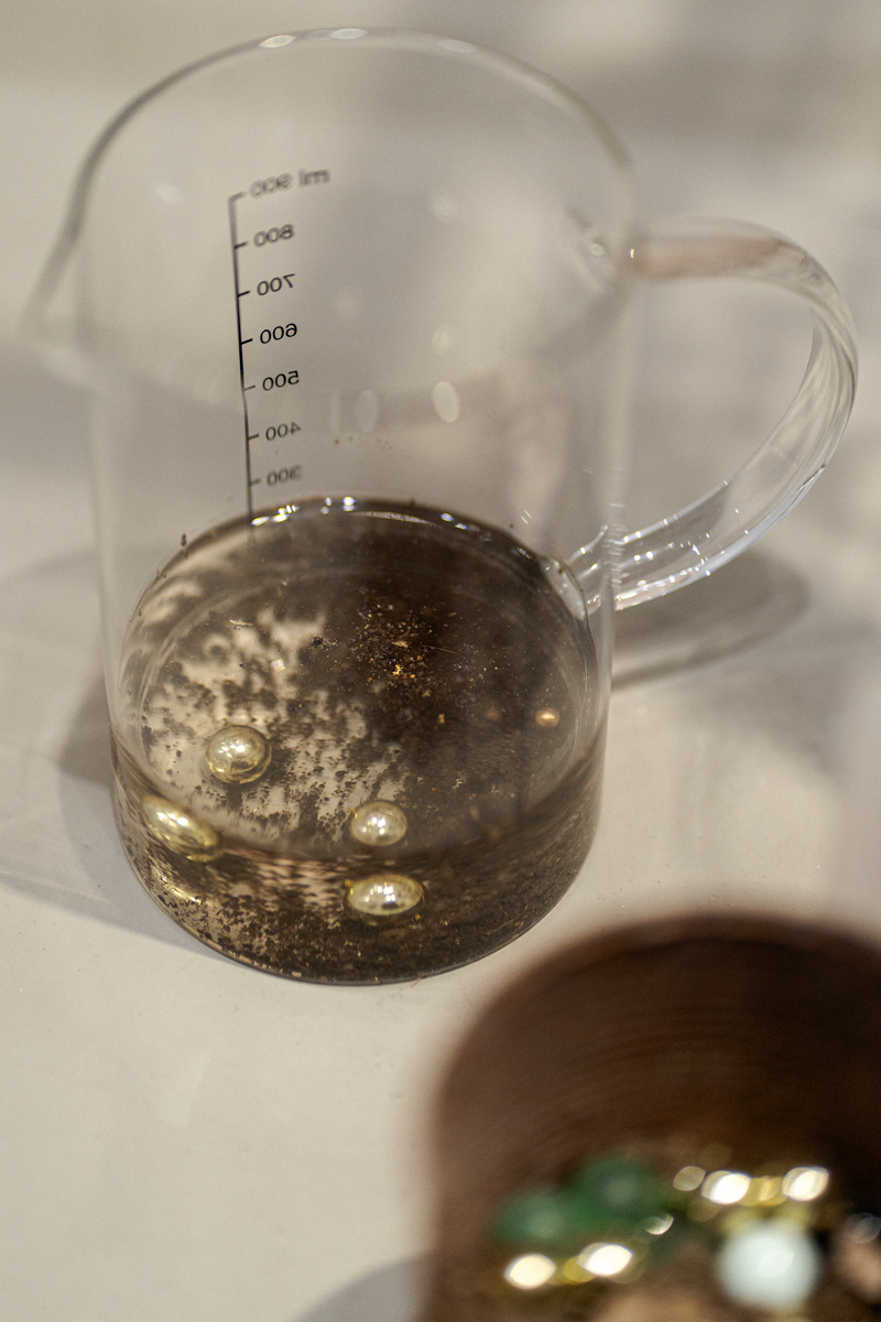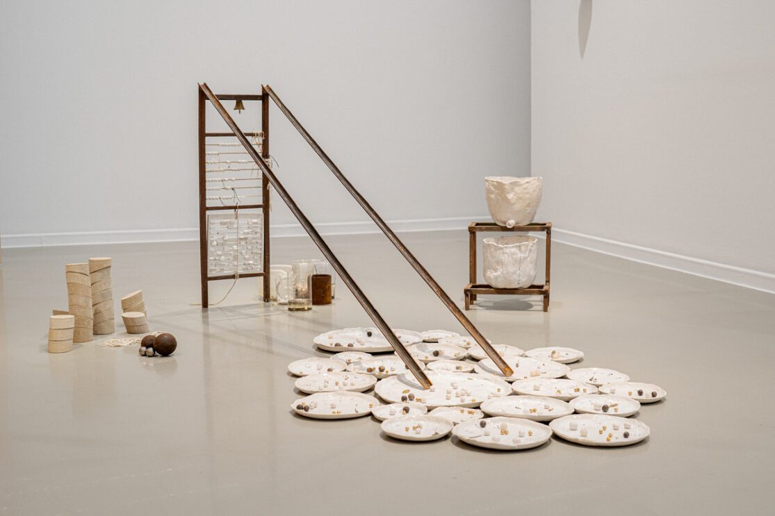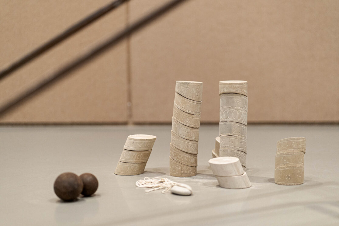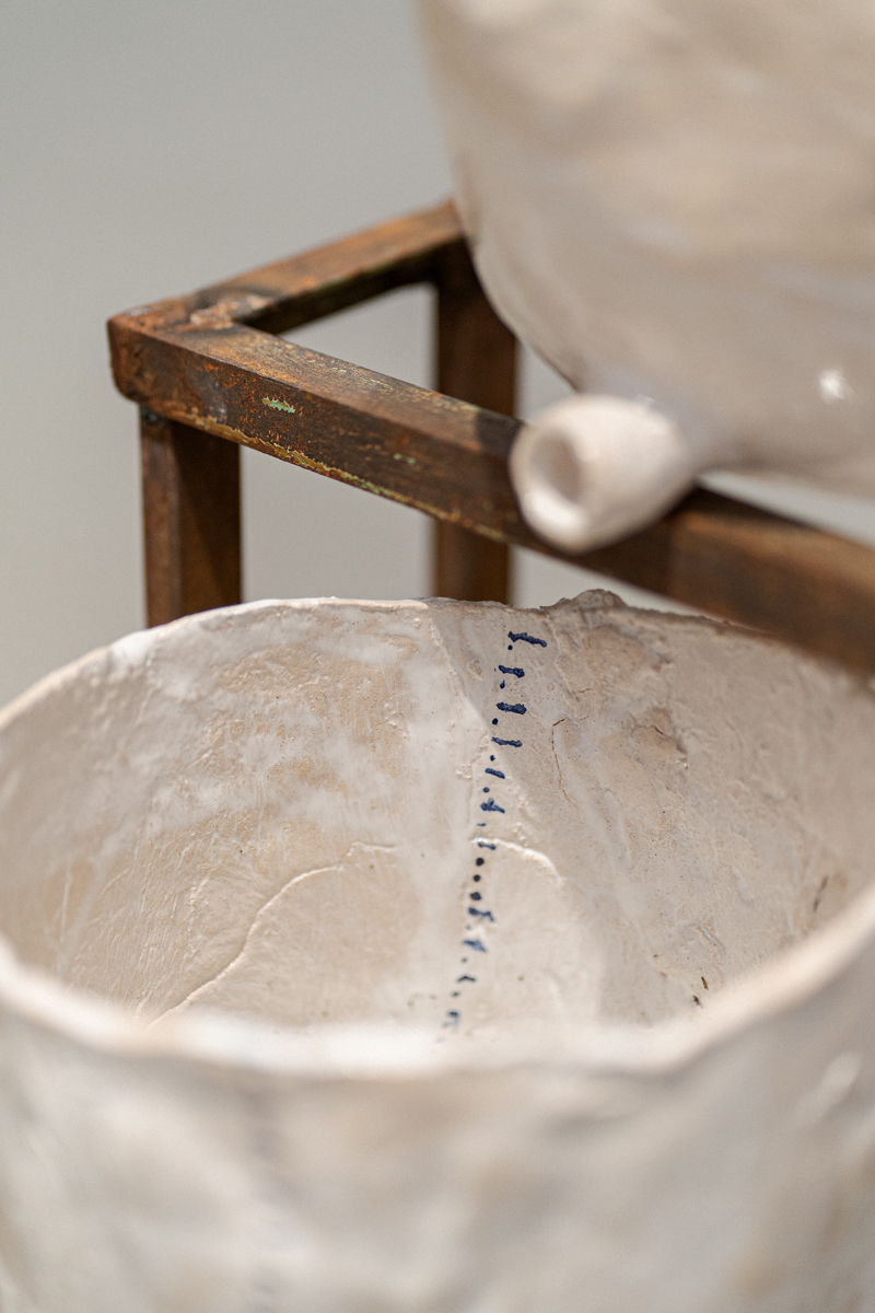 En Generación 2025 presento una serie de piezas que surgen de una investigación en torno a la historia de la medición del tiempo. En el espacio encontraremos unas clepsidras (relojes de agua) y unas rampas similares a las de los experimentos sobre la aceleración de Galileo, que contribuyeron al desarrollo de la idea física moderna de tiempo y en los que también usó agua y bolas de latón. Una serie de artilugios y juegos. La relación entre el agua y la medición del tiempo es muy estrecha: el agua derramada fue usada como medida tanto en los primeros relojes como en la ciencia posterior. Esa agua, ahora quieta, es la medida del tiempo que sucedió. Otros elementos que han estado presentes han sido la campana, el péndulo, el calendario o la columna trajana, con la intención de desarrollar una poética en torno a la medición del tiempo, generando relojes imprecisos y calendarios propios.