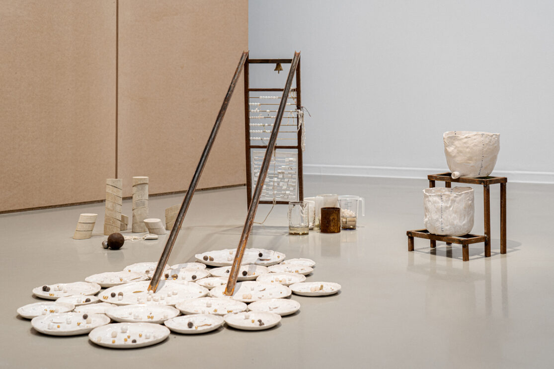 En Generación 2025 presento una serie de piezas que surgen de una investigación en torno a la historia de la medición del tiempo. En el espacio encontraremos unas clepsidras (relojes de agua) y unas rampas similares a las de los experimentos sobre la aceleración de Galileo, que contribuyeron al desarrollo de la idea física moderna de tiempo y en los que también usó agua y bolas de latón. Una serie de artilugios y juegos. La relación entre el agua y la medición del tiempo es muy estrecha: el agua derramada fue usada como medida tanto en los primeros relojes como en la ciencia posterior. Esa agua, ahora quieta, es la medida del tiempo que sucedió. Otros elementos que han estado presentes han sido la campana, el péndulo, el calendario o la columna trajana, con la intención de desarrollar una poética en torno a la medición del tiempo, generando relojes imprecisos y calendarios propios.